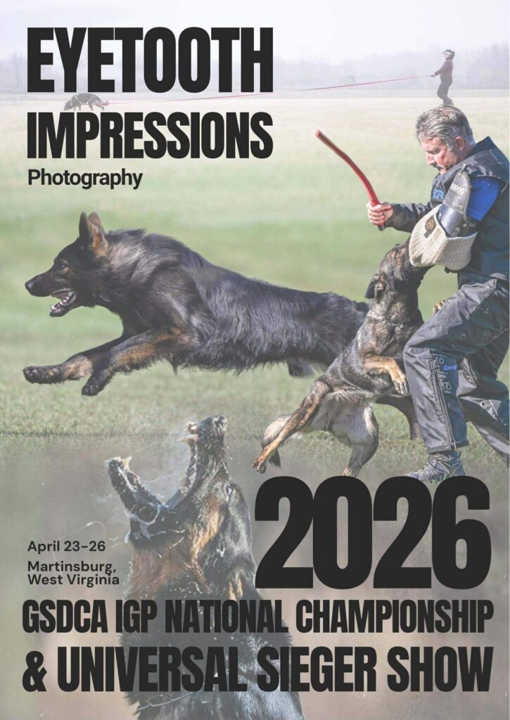 Event photography will be captured by Eyetooth Impressions. Photos will be available for the IGP Championship as well as the Universal Sieger Show. You can find examples of their photography at https://